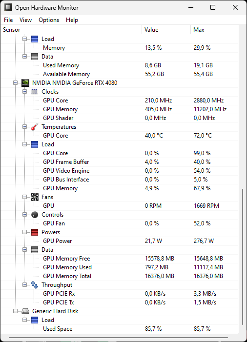 Daarom ook eens gekeken naar de doorvoer van de GPU, deze heeft in dit overzicht een maximale waarde van 3.3 MB/s. PCIe 3.0 x4 heeft een doorvoersnelheid van 3.9 GB/s, dus ook daar kan het probleem niet liggen. Blijft dus over een NVidia RTX4090, maar deze kost wel €1.899,00 en biedt relatief slechts weinig verbetering. De PI van een 4080 is 34.612 en van een 4090 is 38.574, een verschil van slechts 11% en dat is dus de prijs niet waard.