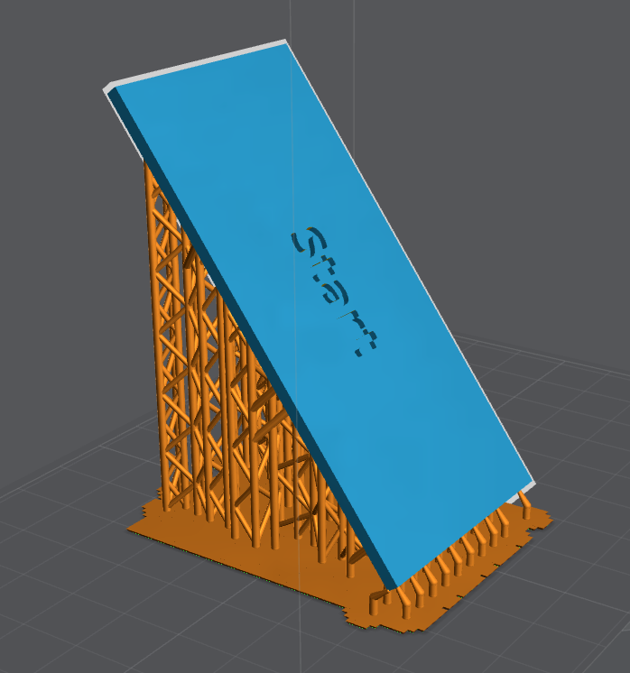 Daarna is dit ontwerp geëxporteerd naar een .stl formaat en dit is in Lychee Slicer geopend. Vervolgens is het ontwerp dusdanig gedraaid dat het min of meer overeenkomt met de positie waarop een volledig paneel geprint zou gaan worden.